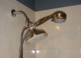 I highly recommend a rounded shower curtain rod...feels like a whole 'nother room in there! Lots of elbow room!